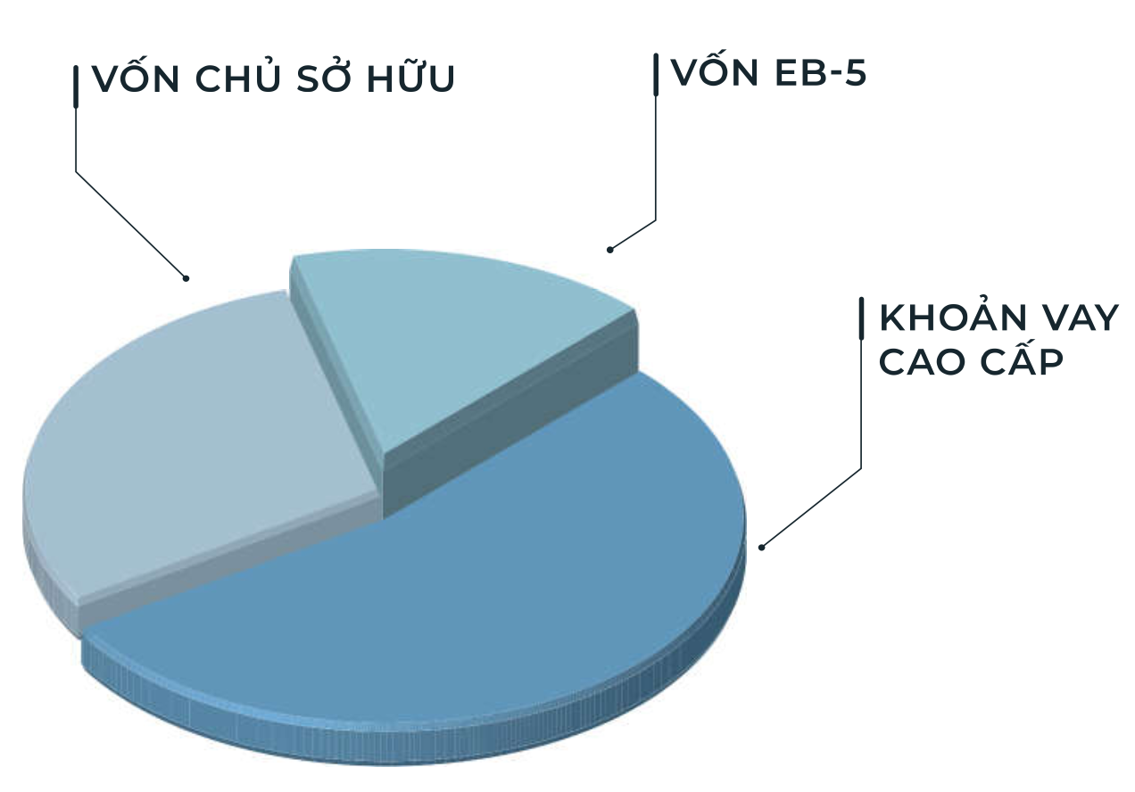 | Cơ cấu khoản vay có đảm bảo | Có đảm bảo hoàn công và vốn vay hạng hai EB-5 với rủi ro thấp. |