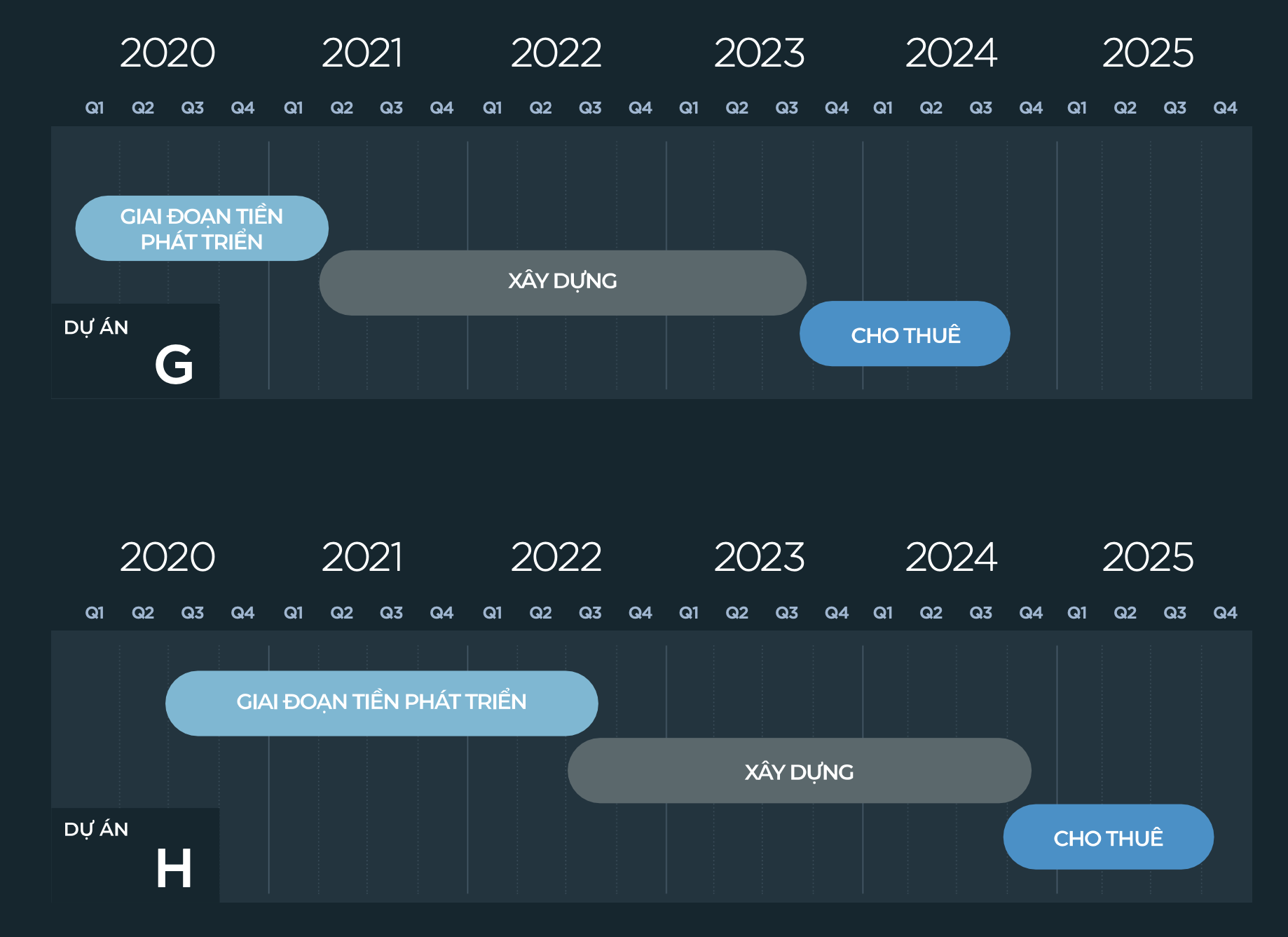 | Tái đầu tư | Kế hoạch tái đầu tư theo quy định của USCIS bao gồm lựa chọn tái đầu tư quỹ EB-5 để tài trợ cho giai đoạn Dự án H. |